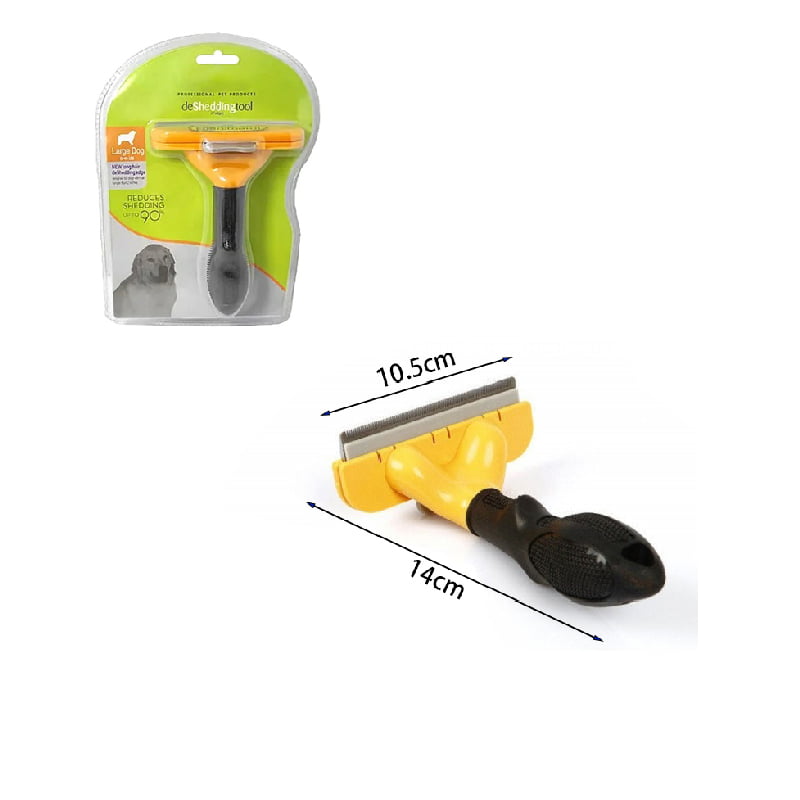 Ολα τα σκυλιά δεν έχουν το ίδιο τρίχωμα. Απλά επιλέξτε για κοντά μαλλιά ή για μακριά μαλλιά το εργαλείο που ταιριάζει με το μέγεθος του σώματος του σκύλου σας. Συνδυάζοντας κάθε σκυλί στο ιδανικό εργαλείο ενισχύετε σημαντικά την απομάκρυνση του τριχώματος. Η σειρά Furmate αφαιρεί αποτελεσματικά το «νεκρό» τρίχωμα αφήνοντας τη γούνα του κατοικίδιου λαμπερή, καθαρή και απαλή στην υφή. Μπορεί να σας βοηθήσει να μειώσετε την ποσότητα των μαλλιών στο σπίτι σας μέχρι και 90%. Αυτό σημαίνει λιγότερος χρόνος καθαρισμού και περισσότερος χρόνος για να περάσετε απολαμβάνοντας το κατοικίδιο ζώο σας.Είναι σχεδιασμένη να επιτρέπει στις άκρες της να περνούν στην εσωτερική επίστρωση του τριχώματος και να αφαιρεί απαλά το υπόστρωμα χωρίς να κόβει ή να καταστρέφει το ευαίσθητο δέρμα του σκύλου. Αποτελείται από ένα μπουτόν στο πίσω μέρος της βούρτσας που με το πάτημά του απομακρύνει το τρίχωμα από το κυρίως στέλεχος του προϊόντος, απαλλάσσοντάς σας από την υποχρέωση της διαρκούς αφαίρεσης τους με το χέρι. Πατάτε το κουμπί και το τρίχωμα «εξαφανίζεται» από τη βούρτσα. Η σειρά Furmate είναι κατασκευασμένη από ανοξείδωτο ατσάλι με πολύ αιχμηρές άκρες. Συνοδεύεται από πλαστικό κάλυμμα για τη προστασία των δοντιών. Η σχεδίαση των δοντιών είναι κατοχυρωμένη με δίπλωμα ευρεσιτεχνίας. Είναι κατάλληλη για όλα τα ζώα με τρίχωμα όπως σκύλους, γάτες, κουνέλια. Χαρακτηριστικά: – Με μηχανισμό FURejector, που με το πάτημα ενός κουμπιού, απομακρύνει τις τρίχες από τη βούρτσα, απαλλάσσοντάς σας από την υποχρέωση της διαρκούς αφαίρεσης τους με το χέρι – Μειώνει την τριχόπτωση έως και 90% – Ιδανική για μακρύτριχα και κοντρότριχα ζώα – Γρήγορη και εύκολη απομάκρυνση του υποστρώματος και των χαλαρών τριχών