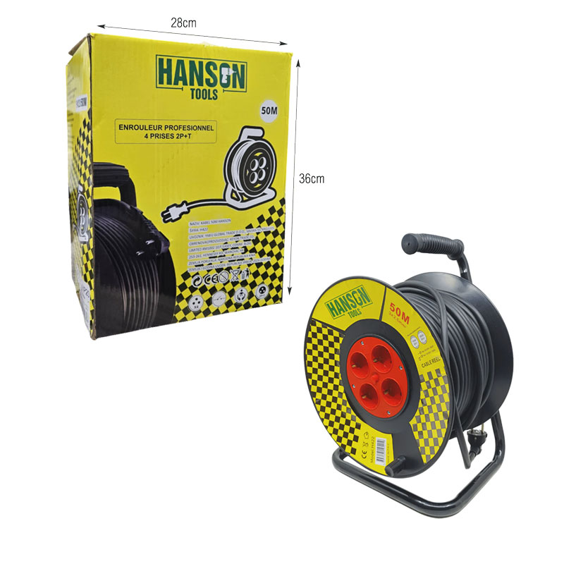 Hanson Tools Μπαλαντέζα Ρεύματος 50m 4 Πρίζες – Extension Cable Reel