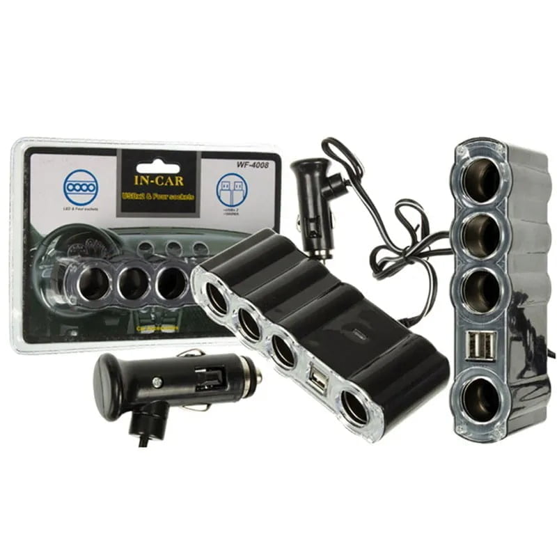 IN-CAR Αντάπτορας φορτιστής αναπτήρα αυτοκινήτου WF-4008 – Car 4 socket & 2 USB 3100MA