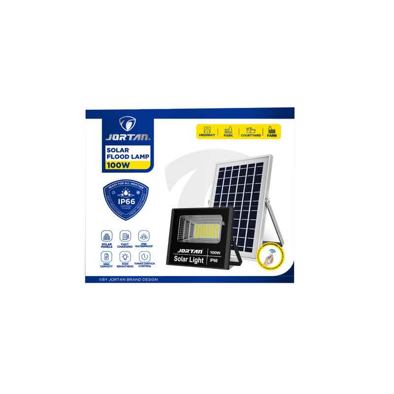 Jortan Ηλιακός Προβολέας Με Τηλεχειριστήριο LED 100W IP66- Solar Flood Lamp