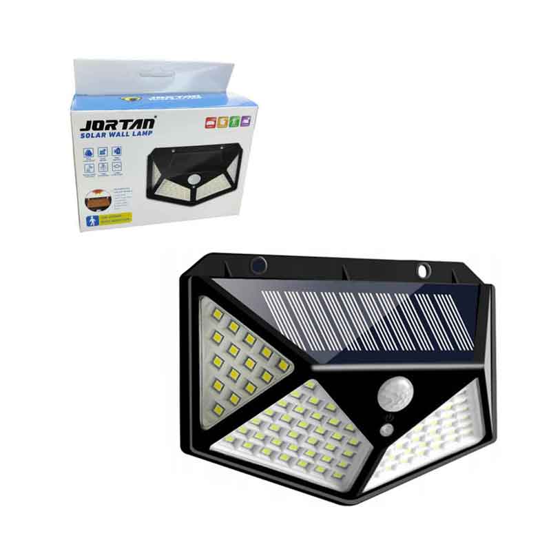 Φωτίστε τον εξωτερικό σας χώρο με το ηλιακό φωτιστικό τοίχου JORTAN! Διαθέτει 100 ισχυρά LED, αισθητήρα ανίχνευσης κίνησης και ηλιακό πάνελ για απόλυτη εξοικονόμηση ενέργειας χωρίς καλώδια ή ρεύμα. Ενεργοποιείται αυτόματα όταν εντοπίζει κίνηση και προσφέρει έντονο φως ιδανικό για αυλές, μπαλκόνια, γκαράζ, αποθήκες ή είσοδοι.