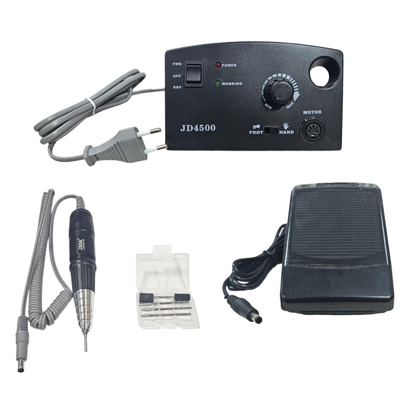 Ο επαγγελματικός τροχός νυχιών JSDA JD4500 είναι ιδανικός για τεχνίτριες νυχιών που απαιτούν δύναμη, σταθερότητα και ακρίβεια. Διαθέτει ρυθμιζόμενη ταχύτητα, λειτουργία προς δύο κατευθύνσεις (FWD/REV), διακόπτη επιλογής χειροκίνητης ή ποδοκίνητης λειτουργίας, και ισχυρό μοτέρ για συνεχή χρήση.