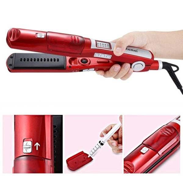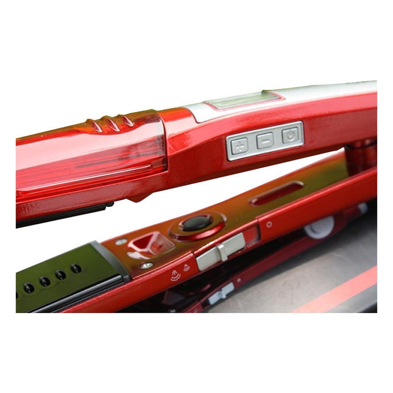 Ισιωτική πρέσα μαλλιών με ατμό κατάλληλη και για επαγγελματική χρήση. Διαθέτει κεραμικές πλάκες που δεν καταστρέφουν τα μαλλιά, ενώ είναι ιονικές ώστε τα μαλλιά να μην ηλεκτρίζονται.
