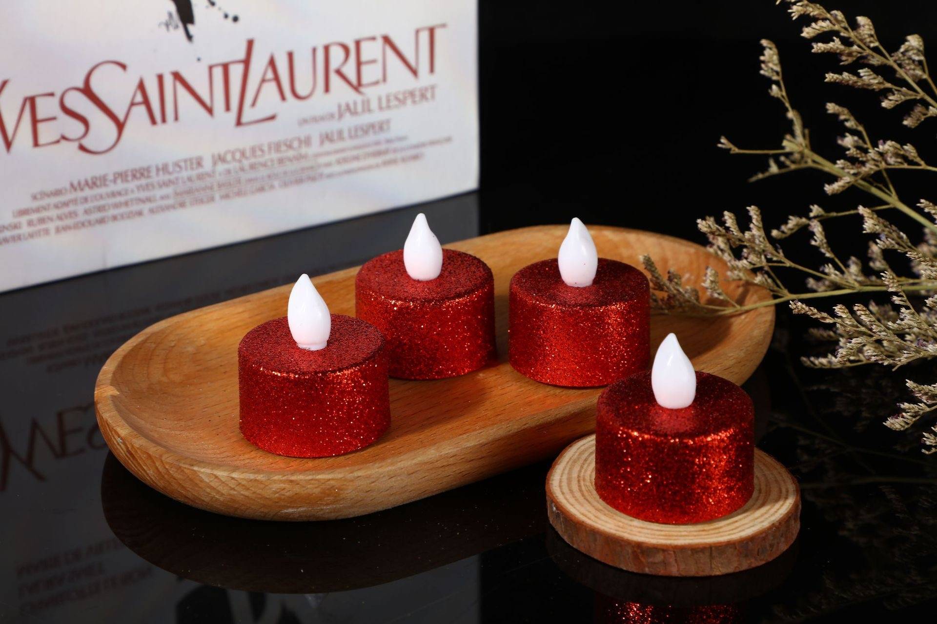 LED dusting pink round red candle light (12PCS)