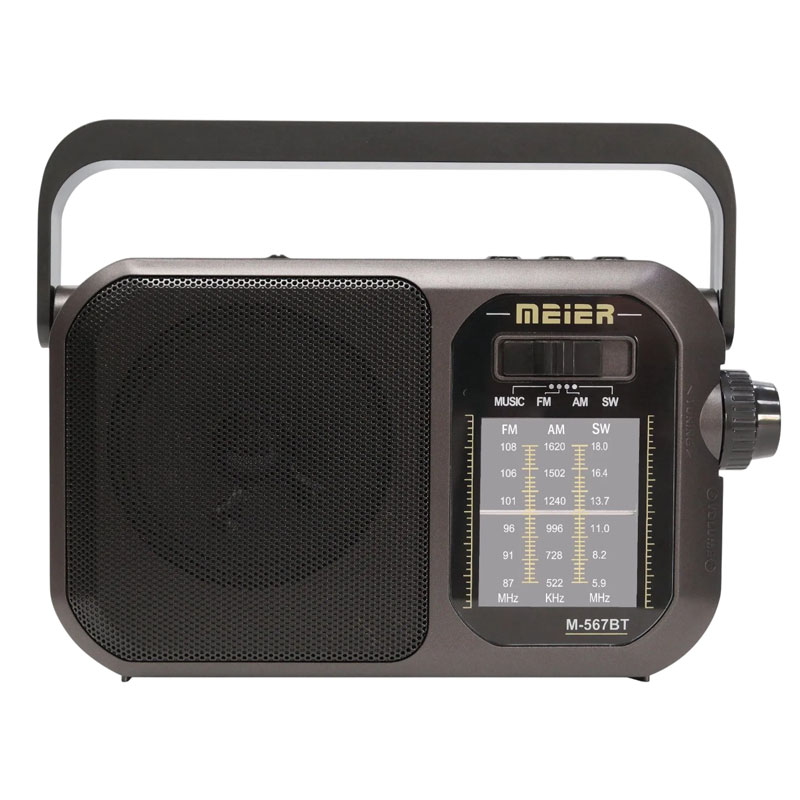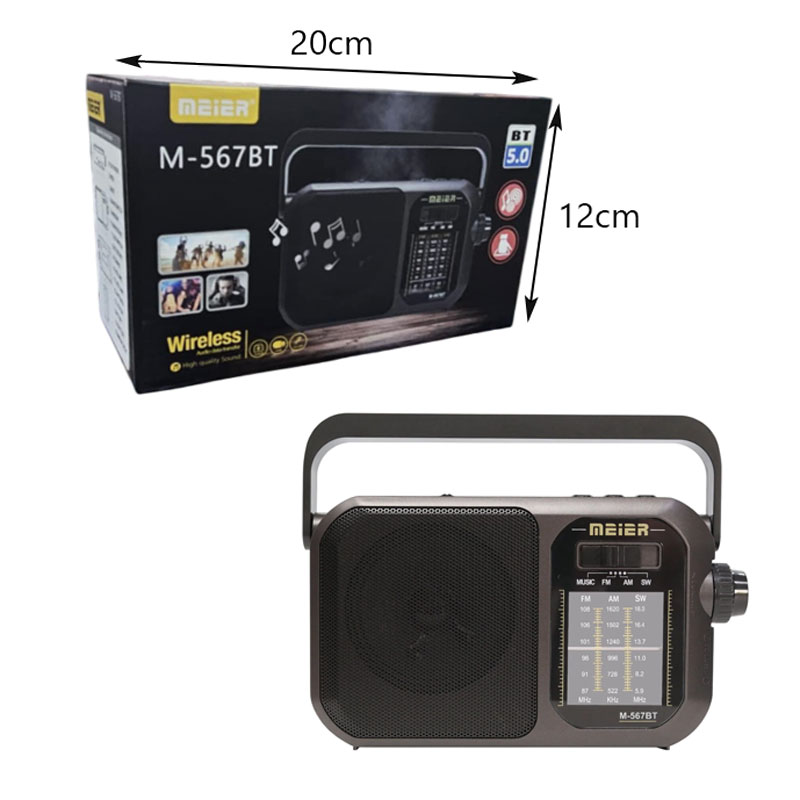 Ανακάλυψε το Meier M-567BT – ένα πολυλειτουργικό φορητό ραδιόφωνο με ρετρό σχεδιασμό που συνδυάζει στυλ και πρακτικότητα! Διαθέτει υποστήριξη AM/FM/SW ραδιοφώνου, Bluetooth για ασύρματη αναπαραγωγή μουσικής, USB και TF κάρτες, ενσωματωμένο φακό LED, καθώς και επαναφορτιζόμενη μπαταρία τύπου 18650 για απόλυτη φορητότητα.