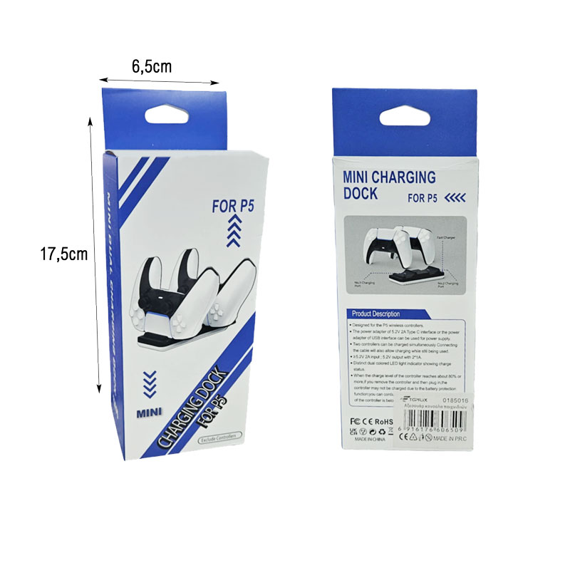 Βάση φόρτισης τύπου mini, σχεδιασμένη ειδικά για χειριστήρια PlayStation 5. Διαθέτει διπλή υποδοχή για ταυτόχρονη φόρτιση δύο χειριστηρίων και τροφοδοτείται μέσω καλωδίου USB-C (περιλαμβάνεται στη συσκευασία). Η λειτουργία γρήγορης φόρτισης και οι ενσωματωμένες ενδείξεις LED παρέχουν άμεση πληροφόρηση για την κατάσταση φόρτισης κάθε χειριστηρίου.