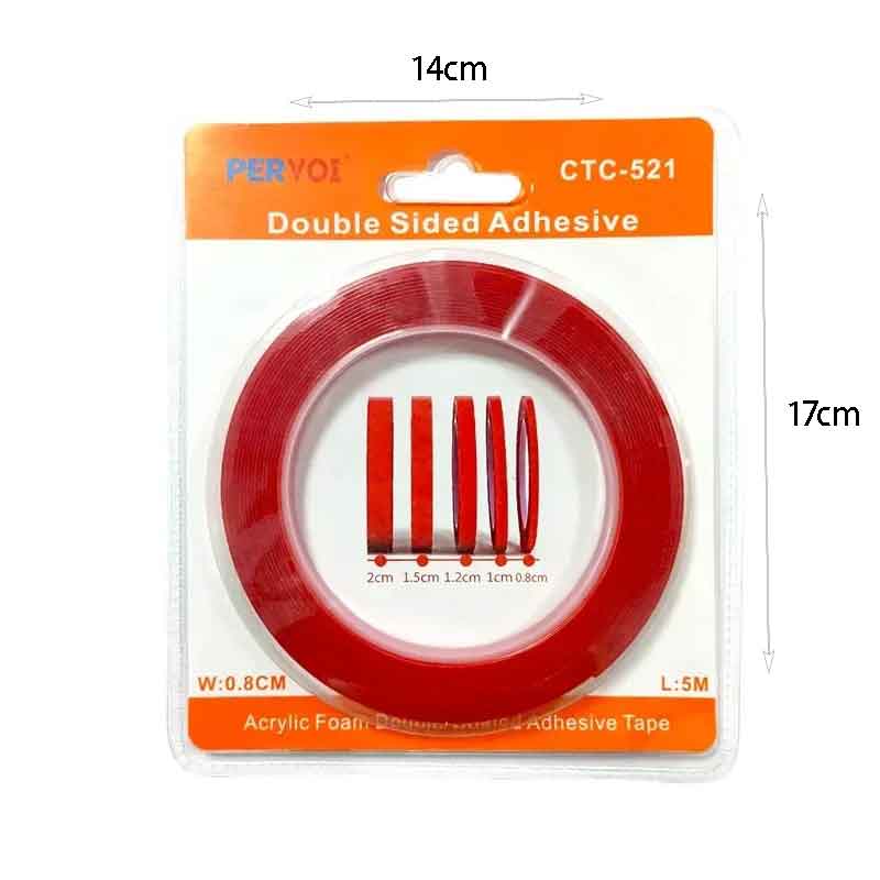 Η Pervoi CTC-521 είναι μια ισχυρή διπλής όψεως ταινία από ακρυλικό υλικό, ιδανική για πληθώρα εφαρμογών τόσο στο σπίτι όσο και στο γραφείο. Διαθέτει ισχυρή πρόσφυση και εξαιρετική αντοχή, προσφέροντας καθαρή και ασφαλή στερέωση χωρίς τη χρήση βιδών ή καρφιών.