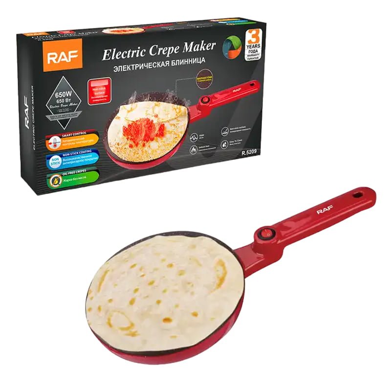 Η Αντικολλητική Ηλεκτρική Κρεπιέρα Raf R.5209 έχει επιφάνεια πλάκας με αντικολλητική επίστρωση. Σας επιτρέπει να φτιάξετε γρήγορα και εύκολα κρέπες, μαλακές τορτίγιες,τάκος και πολλά άλλα είδη πρωινού που αγαπάτε σε 20 δευτερόλεπτα, ακόμα και χωρίς μαγειρική εμπειρία. Απλώς προθερμάνετε τη μηχανή της κρέπας, απλώστε μια λεπτή στρώση μείγματος και δείτε την κρέπα σας να μαγειρεύεται σε δευτερόλεπτα. Θα σας βοηθήσει να φτιάξετε κρέπες εύκολα, με ασφάλεια και χωρίς ταλαιπωρία!