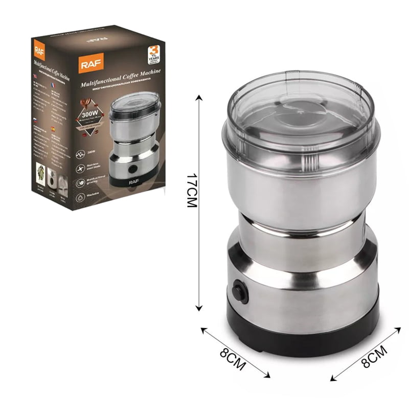Ηλεκτρικός μύλος καφέ της εταιρείας Raf, ο οποίος είναι η κατάλληλη συσκευή για να παράγετε στο σπίτι σας ανά πάσα στιγμή φρεσκοαλεσμένο καφέ, απολαμβάνοντας έτσι όσο το δυνατόν γευστικότερο αποτέλεσμα. Ο καφές που προέρχεται από μύλο και καταναλώνεται άμεσα είναι πιο φρέσκος από τον συσκευασμένο, ο οποίος μόλις ανοιχτεί και έρθει σε επαφή με τον αέρα αρχίζει και χάνει τη γεύση και τα αρώματα του.