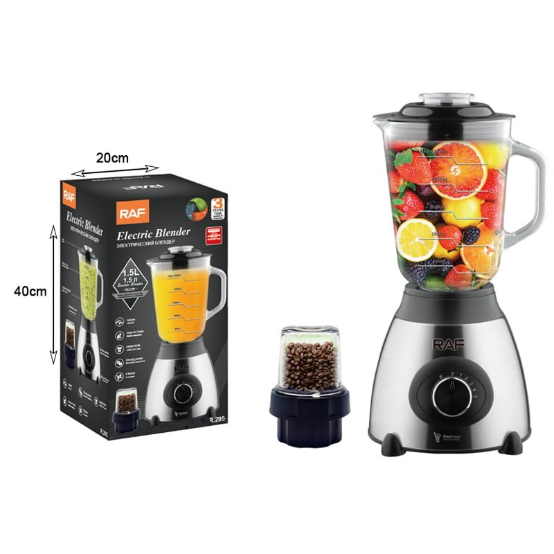 RAF Μπλέντερ με Γυάλινη Κανάτα 1.5lt 1000W Inox R.295 – Electric Blender