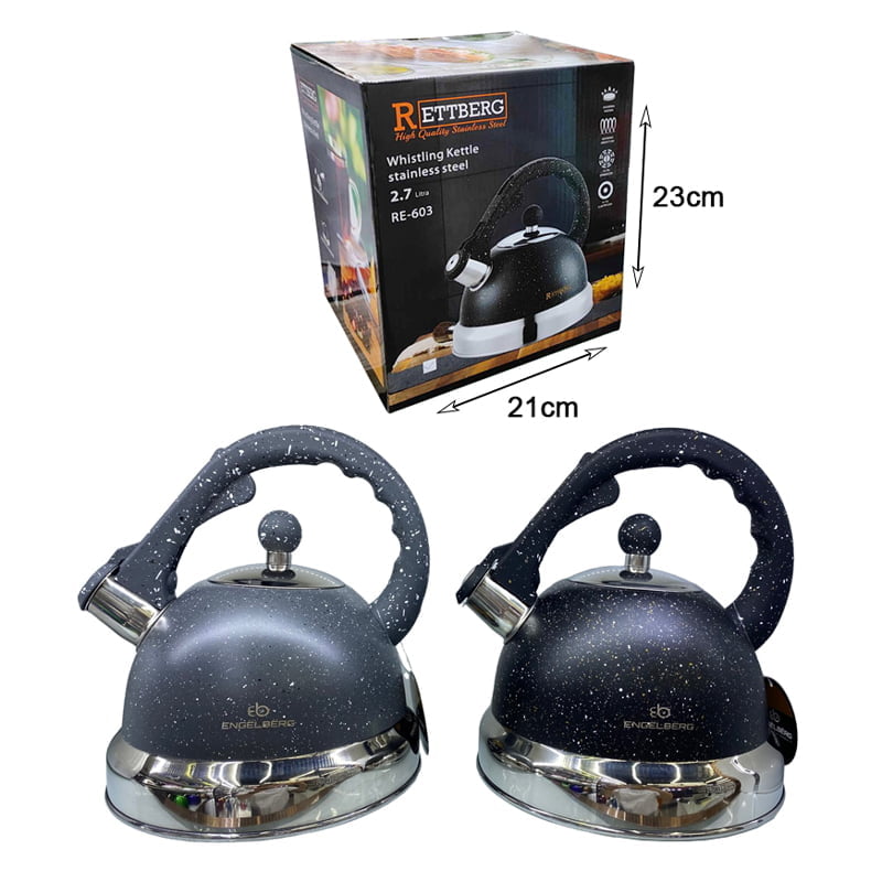 Ο κλασικός βραστήρας νερού -τσαγιερό. Πραγματικό στολίδι για την Κουζίνα σας και είναι κατάλληλος Για το βράσιμο του νερού ή ενός νόστιμου τσαγιού. Ξεχωρίζει για τα εξής χαρακτηριστικά : Χωρητικότητα: 2,7 lt Κατάλληλος για ηλεκτρικές κουζίνες ,φυσικού αερίου και κεραμικές εστίες Υψηλής ποιότητας ανοξείδωτο ατσάλι Σφυρίζει όταν φθάσει σε σημείο βρασμού Κατάλληλο για καθαρισμό σε πλυντήριο πιάτων Θερμομονωτικό χερούλι