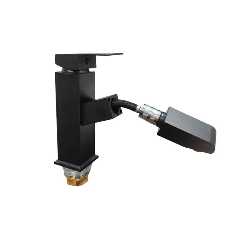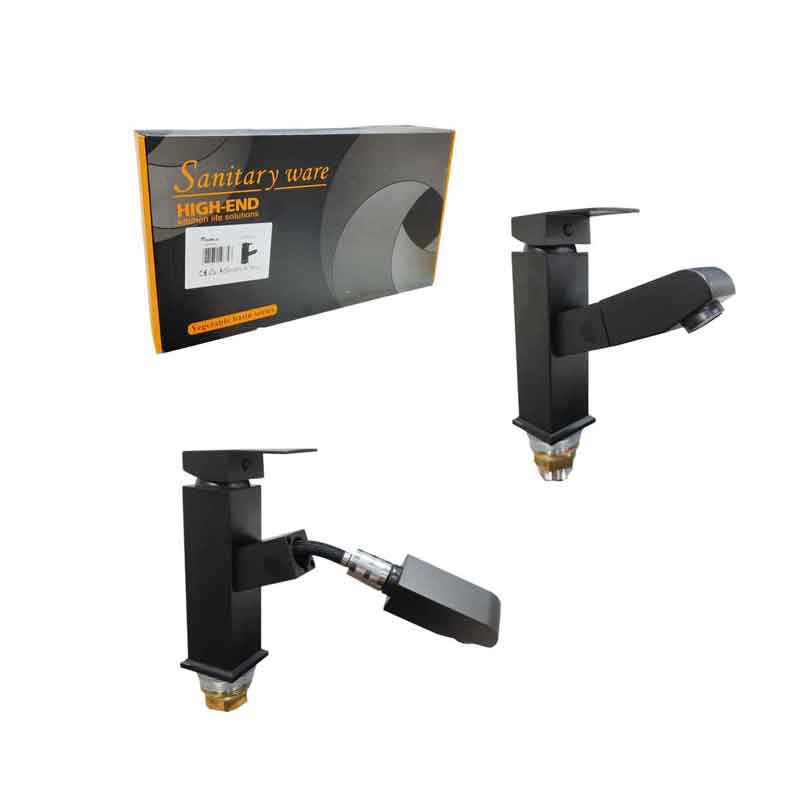 Μοντέρνα μπαταρία νιπτήρα σε κομψό μαύρο χρώμα, με μίκτη και ανακλινόμενο στόμιο για μεγαλύτερη ευελιξία στη χρήση. Κατασκευασμένη από ανθεκτικά υλικά, συνδυάζει πρακτικότητα, αισθητική και μακροχρόνια αντοχή.