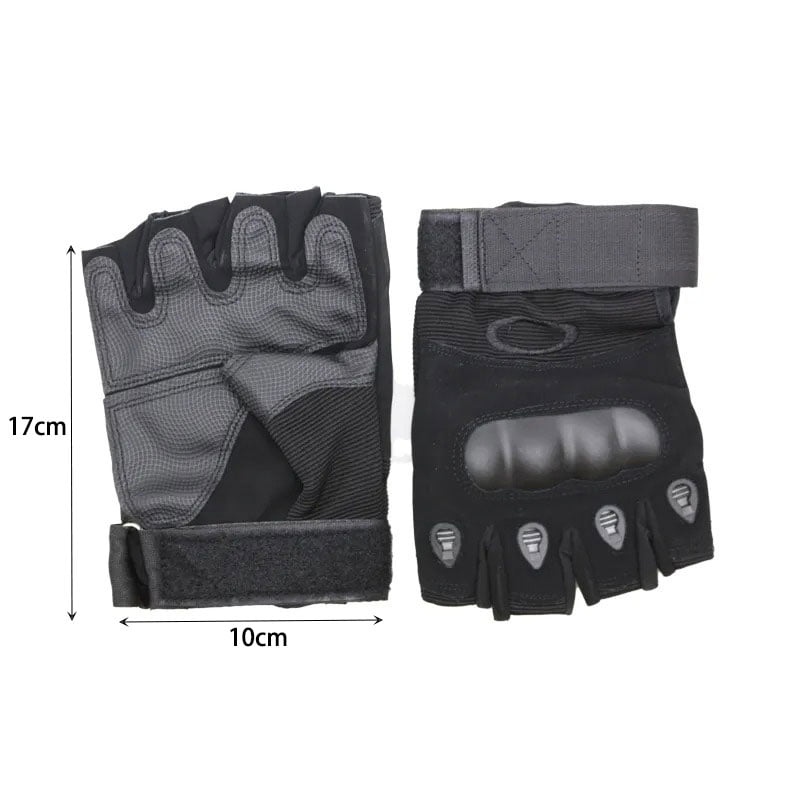 Γάντια με μισά δάχτυλα. Με προστασία στην άρθρωση των δαχτύλων. Εξειδικευμένα υλικά για αντοχή και άνεση. Με ενίσχυση στα σημεία τριβής. Spandex για ελαστικότητα και άνεση. Υψηλής ποιότητας ραφές. Ειδικό περικάρπιο που ασφαλίζει το γάντι στο χέρι. Ιnjection molded knuckle protection. Αντιολισθιτική επένδυση στην παλάμη. Υψηλή διαπνοη για να μην ιδρώνει το χέρι. Απομακρύνουν τον ιδρώτα. Στεγνώνουν γρήγορα.