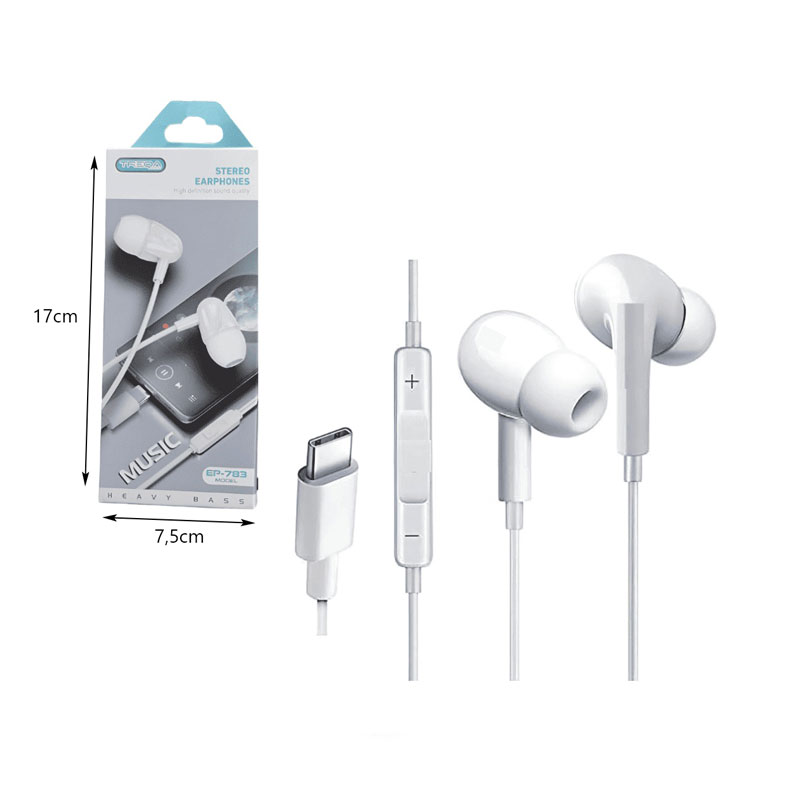 Τα Treqa EP-783 είναι in-ear ακουστικά με θύρα Type-C, σχεδιασμένα για όσους αναζητούν καθαρό, ποιοτικό ήχο και άνετη εφαρμογή σε καθημερινή χρήση. Με κομψό λευκό design, προσφέρουν σύγχρονο στυλ και άψογη προσαρμογή στο αυτί, ιδανικά για μουσική, podcasts ή video.