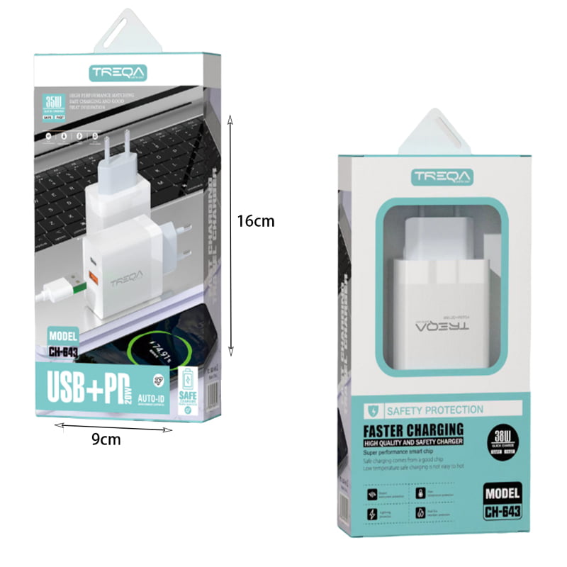 TREQA 20W γρήγορος φορτιστής κινητού Type-C USB+PD CH-643 – Fast charger