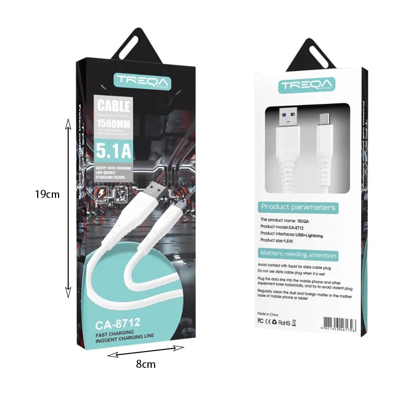 Treqa CA-8712 καλώδιο δεδομένων 1.5m USB σε Lighting – Fast Charging Cable 5.1A