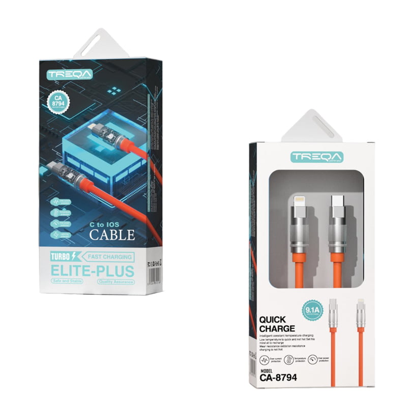 Treqa CA-8794 καλώδιο δεδομένων 1m Type-C σε Lighting – Elite Plus Cable 9.1A