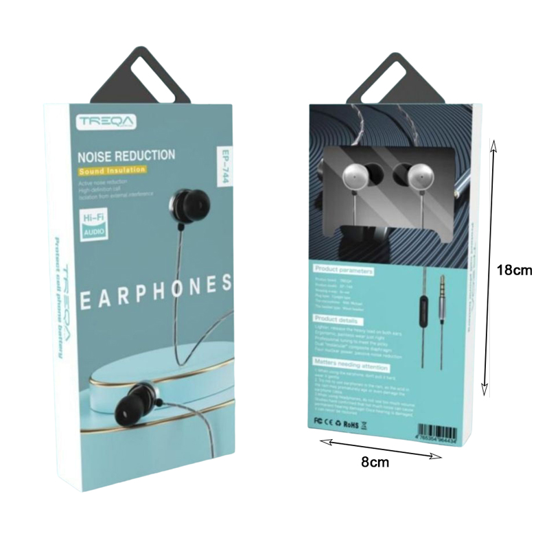 Treqa In-ear Handsfree Ενσύρματα Ακουστικά με Βύσμα 3.5mm EP-744 – In-ear Handsfree Noise Reduction Earphones