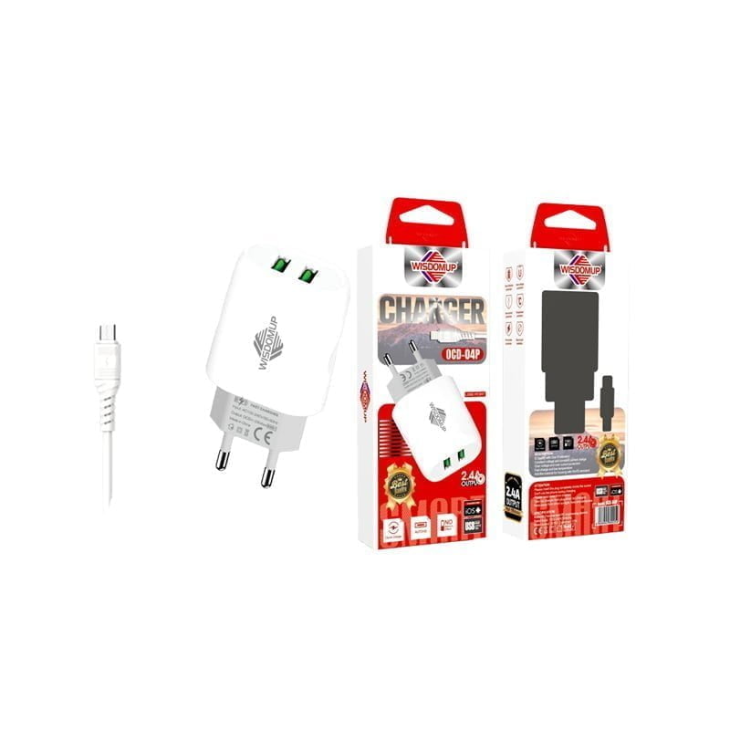 Wisdomup Φορτιστής Κινητού με 2 θύρες USB-C και καλώδιο δεδομένων Micro-USB 2.4A είναι ένα φορτιστής ιδανικό για γρήγορη φόρτιση. Συμβατό με συσκευές που διαθέτουν Micro-USB υποδοχή. Εξασφαλίζει ταχύτητα φόρτισης maximum 2.4A.