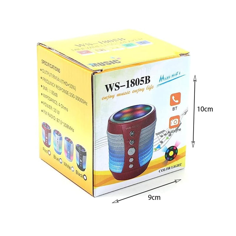 Εύρος ασύρματης μετάδοσης 10M Λόγος θορύβου ήχου ≥90db Χωρητικότητα μπαταρίας 1200mAh Τάση 3,7V Κανονικός χρόνος αναπαραγωγής έντασης 3-4 ώρες Προδιαγραφή κόρνας OD 45mm x 1 τεμ Ισχύς ηχείου 4 Ω / 5 w x 1 Απόκριση συχνότητας 120hz-20khz Μέγεθος προϊόντος 84*79*94mm Βάρος προϊόντος 340g Διαστάσεις χαρτοκιβωτίου 33*45*49cm Χωρητικότητα χαρτοκιβωτίου 60 σετ Βάρος χαρτοκιβωτίου 22 κιλά Τάση φόρτισης 5V / 500MA Περιλαμβάνεται πακέτο: 1 x Ηχείο 1 x καλώδιο USB 1 x Καλώδιο AUX 1 x Εγχειρίδιο Προσοχή: Το προϊόν διατίθεται σε διάφορα χρώματα και σχέδια και η επιλογή γίνεται τυχαία, βάσει διαθεσιμότητας. Η τιμή αφορά ένα (1) τεμάχιο και όχι το σύνολο των προϊόντων που απεικονίζονται στη φωτογραφία.